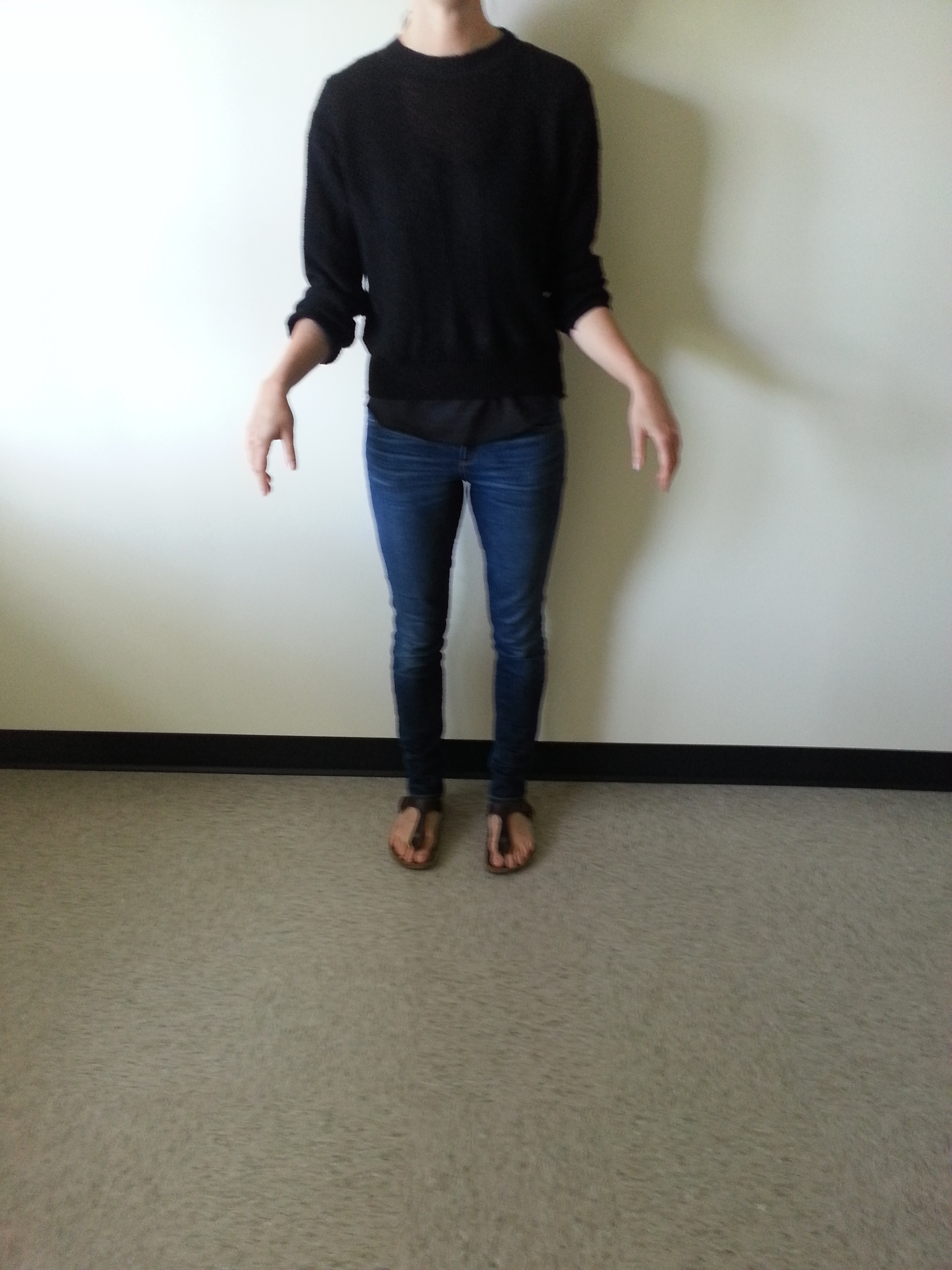 lift right arm in a cast, hand relaxed, triple cookie dunk tilt