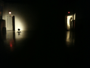 The dances being done are slowly moving forward, steady rockin’, and in this way seduce a certain and special form of spectation from my body. In reading Chambers’ description of her event “the rock is a whole and joyous dance that can tap into the parasympathetic nervous system” I am somewhat shocked to realize that yes, indeed this was the “feeling” I had. The music is so loud and heavy, the lights are so colourful, flashy, and club-like, the haze and heat is so disorienting, and yet there I sat pleasantly swaying alongside this calm motion of the dancer.